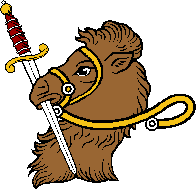 | The Gold Collection > CAMELS > Camel Head Erased Bridled Holding Sword |