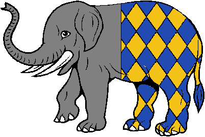 Full description: ELEPHANTS, ELEPHANTS GENERAL, Elephant Passant Per Pale Lozengy |  |
