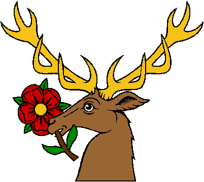 Full description: STAGS and BUCKS, HEADS COUPED HOLDING, Heraldic Rose Slip |  |