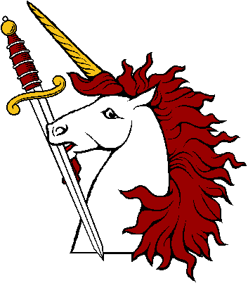 | The Gold Collection > UNICORN GENERAL > UNICORNS GENERAL > Unicorn Head Couped Holding Sword |