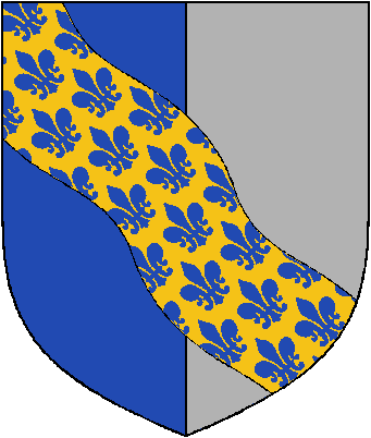 | Per Pale a Bend Wavy Semee de Lis |