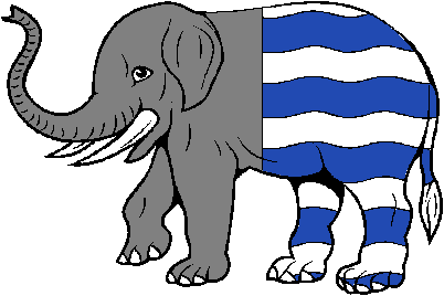 Full description: ELEPHANTS, ELEPHANTS GENERAL, Elephant Passant Per Pale Barry Wavy |  |