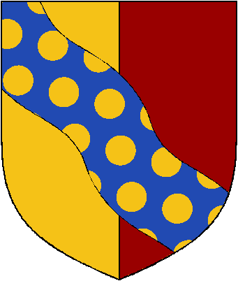 | Per Pale a Bend Wavy Bezantee |