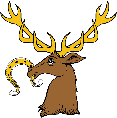 Full description: STAGS and BUCKS, HEADS ERASED HOLDING, Erased Holding Horsehoe |  |