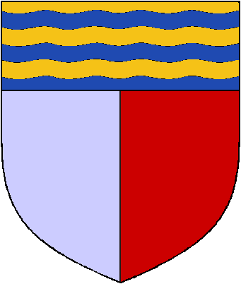 | Per Pale a Chief Barry Wavy |
