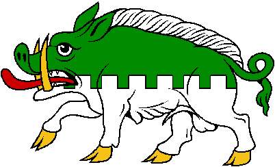 | Boar Passant Per Fesse Embattled |